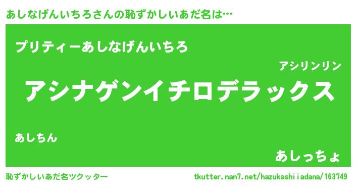 | 意味不明あだ名 | 『自称あしなげんいちろ』 |