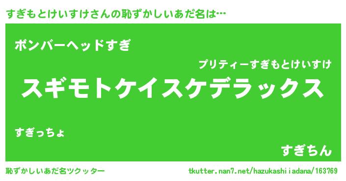 | ヘコむあだ名 | 『すぎもとけいすけ(笑)』『すぎにー』 |