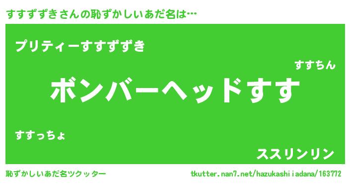 | ヒーロー風カッコイイあだ名 | 『正義の使者すすずずき』『天弓騎士スス』 |