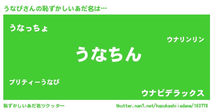| ヘコむあだ名 | 『うなぴ(笑)』『なまこ酢』 |