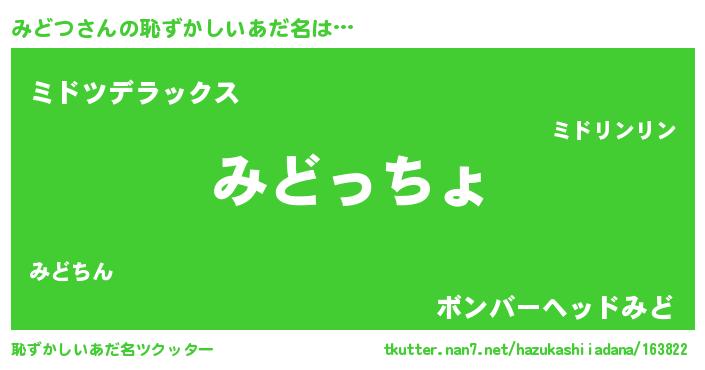 | 意味不明あだ名 | 『みどつフォーエバー』『自称みどつ』 |