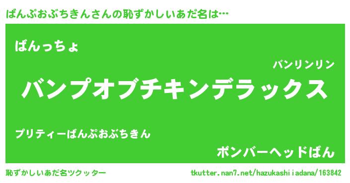 | 意味不明あだ名 | 『自称ばんぷおぶちきん』 |