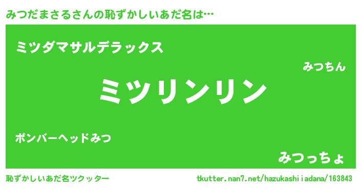 | 意味不明あだ名 | 『住所不定無職みつだまさる(56歳)』 |