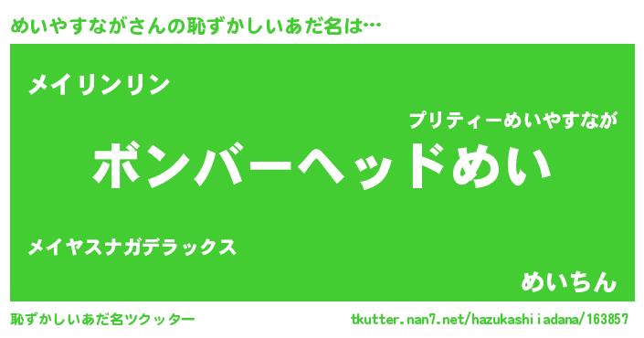 | ヘコむあだ名 | 『めいっちょ』『めいやすなが(笑)』 |