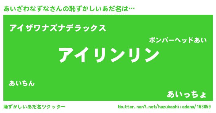 | 男性向けラノベタイトル風あだ名 | 『この素晴らしい世界にあいざわなずなを!』 |
