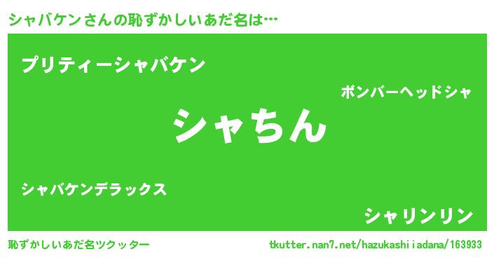 | ヘコむあだ名 | 『シャバケン(苦笑)』『シャふぇ~』 |