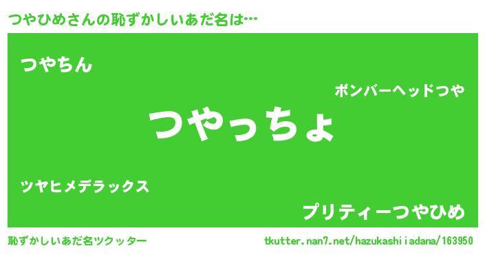 | 男性向けラノベタイトル風あだ名 | 『ツヤヒメスレイヤー』 |