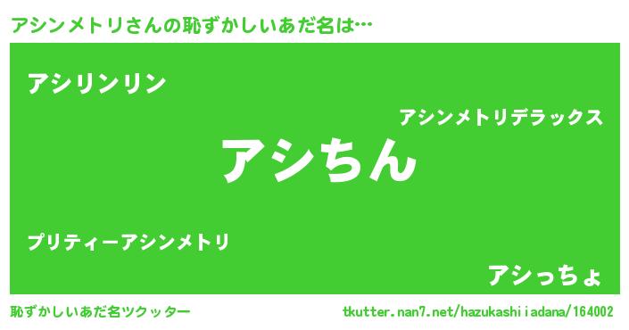| 意味不明あだ名 | 『永久保存アシンメトリ』 |