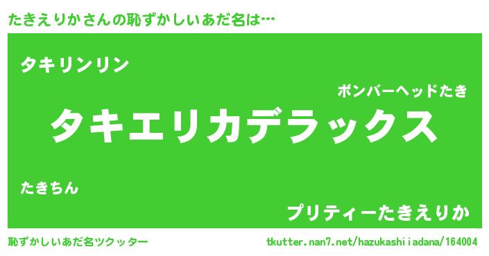 | 意味不明あだ名 | 『自称たきえりか』『ペロリンたきえりか』 |