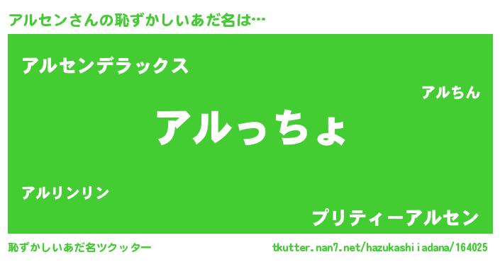 | 女子向けラノベタイトル風あだ名 | 『アルセンの雑貨屋さん』『闇のアルセン』 |