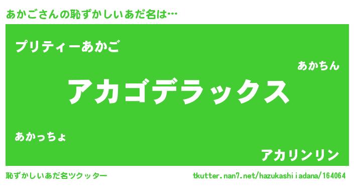 | ヒーロー風カッコイイあだ名 | 『超時空戦士アカゴ』『スーパーアカゴ』 |