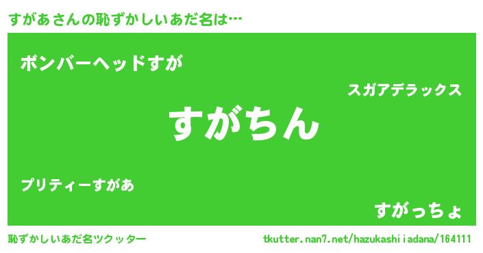 | 意味不明あだ名 | 『永久保存すがあ』『すがあフォーエバー』 |