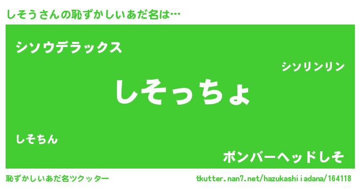 | 意味不明あだ名 | 『しそうフォーエバー』『自称しそう』 |
