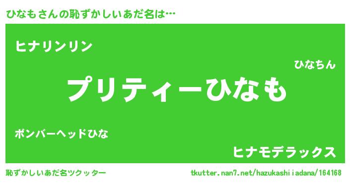 | ヘコむあだ名 | 『ひなふぇ~』『ひなお』『レバニラ』 |
