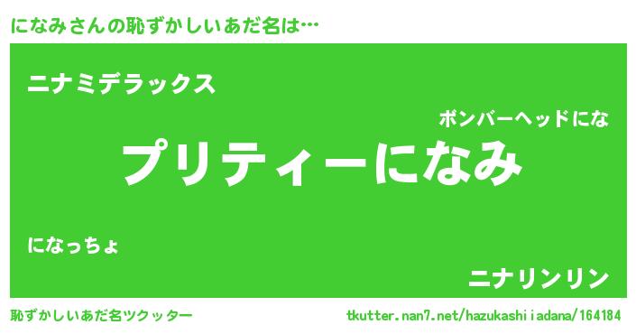 | ヒーロー風カッコイイあだ名 | 『スーパーニナミ』『仮面ニナダー』 |