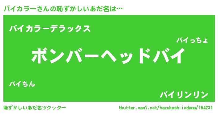 | 意味不明あだ名 | 『住所不定無職バイカラー(13歳)』 |