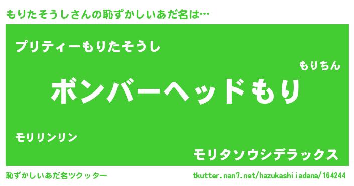 | ヘコむあだ名 | 『もりもー』『もりたそうし(笑)』 |