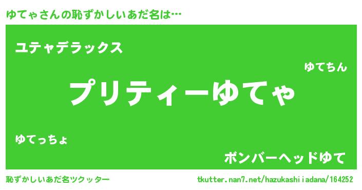 | ヘコむあだ名 | 『ゆてにゅー』『ゆてゃ(小並感)』 |