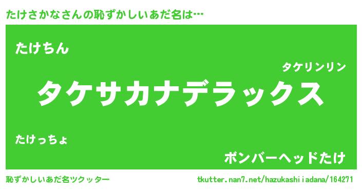 | 意味不明あだ名 | 『自称たけさかな』『永久保存たけさかな』 |