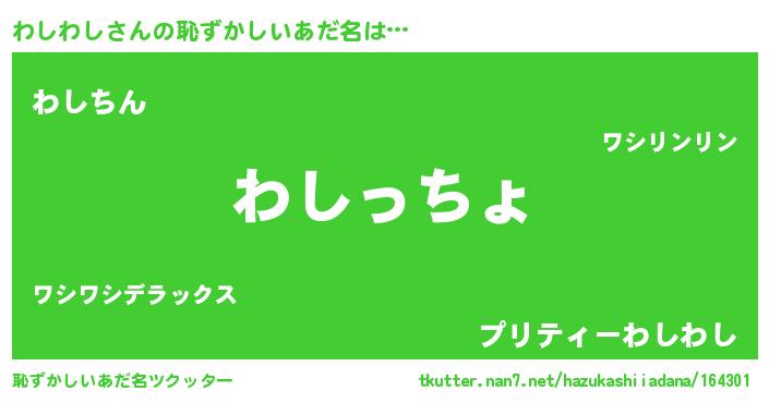 | 意味不明あだ名 | 『住所不定無職わしわし(10歳)』 |