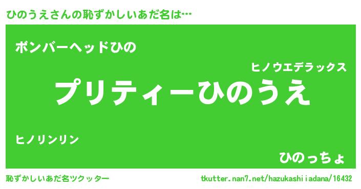 | 男性向けラノベタイトル風あだ名 | 『ヒノウエアートオンライン』 |