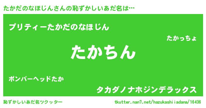 | 意味不明あだ名 | 『住所不定無職たかだのなほじん(81歳)』 |