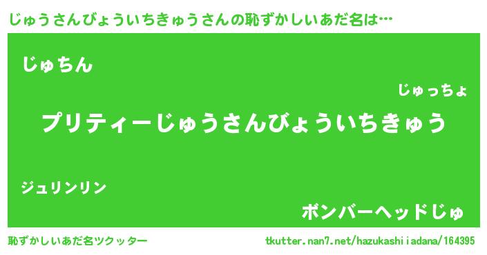 | ヘコむあだ名 | 『じゅにゅー』『つくし』『じゅ太郎』 |