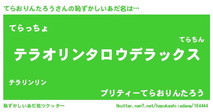 | 意味不明あだ名 | 『自称てらおりんたろう』 |