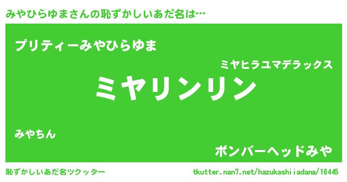 | 男性向けラノベタイトル風あだ名 | 『はたらくみやひらゆまさま!』 |