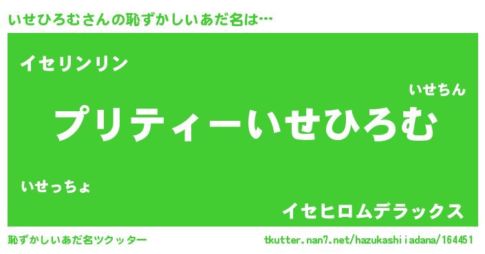 | ヒーロー風カッコイイあだ名 | 『スーパーイセヒロム』『幻影騎士イセ』 |