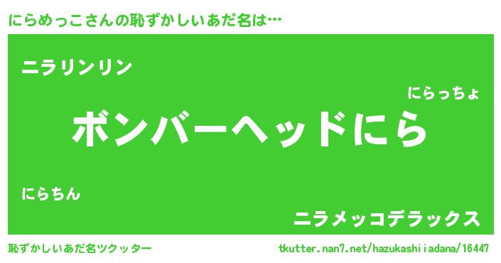 | ヒーロー風カッコイイあだ名 | 『慈愛の使者にらめっこ』『暗黒騎士ニラ』 |