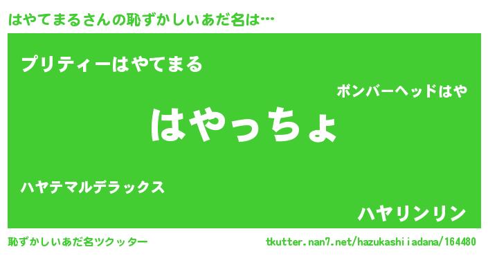 | 男性向けラノベタイトル風あだ名 | 『やはりはやてまるの青春ラブコメはまちがっている 』 |
