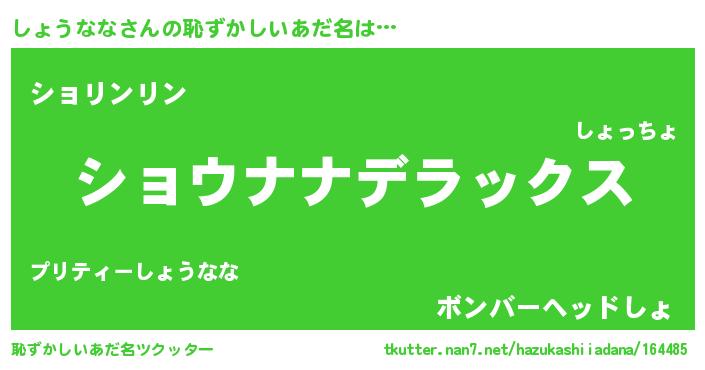 | 男性向けラノベタイトル風あだ名 | 『転生したらしょうななだった件』 |