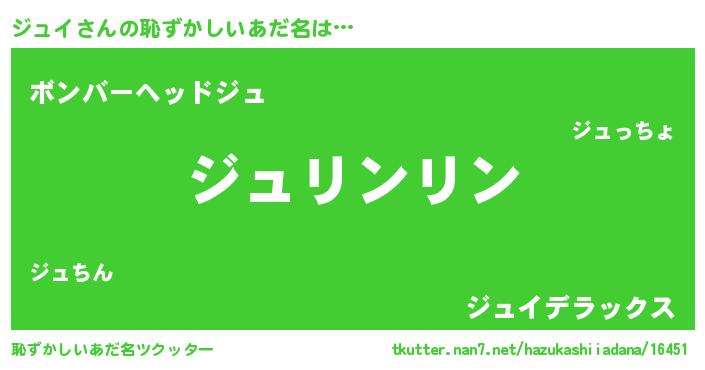 | 男性向けラノベタイトル風あだ名 | 『ダンジョンにジュイを求めるのは間違っているだろうか』 |