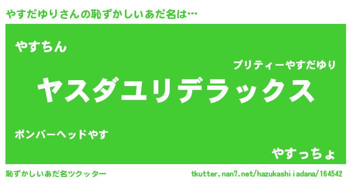 | ヘコむあだ名 | 『やすだゆり(笑)』『豆乳』 |