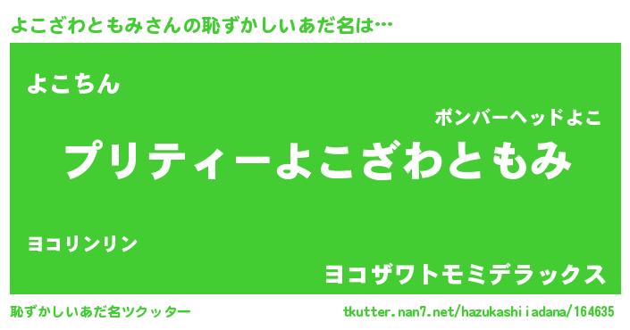 | ヘコむあだ名 | 『よこもー』『よこざわともみ(震え声)』 |