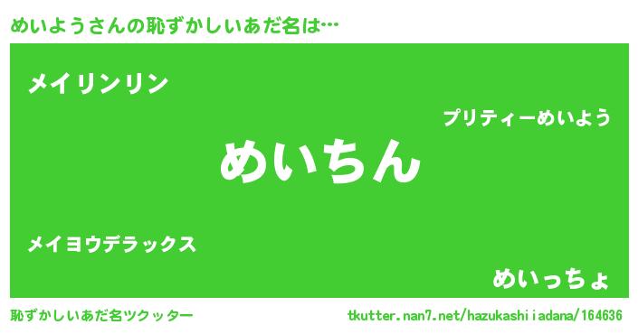 | ヘコむあだ名 | 『めいよう(小並感)』『めいっぺ』 |