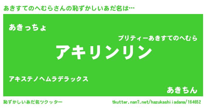 | 意味不明あだ名 | 『とにかく怪しいあきすてのへむら』 |