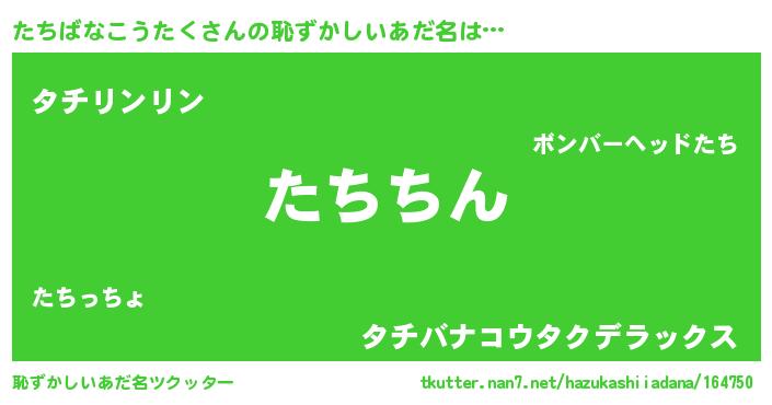 | ヘコむあだ名 | 『たちばなこうたく(笑)』『たちお』 |