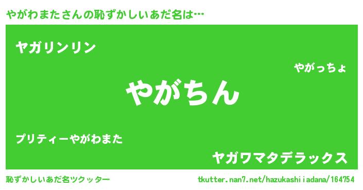 | ヘコむあだ名 | 『やがわまた(笑)』『やがを』 |
