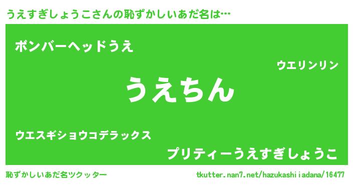 | ヘコむあだ名 | 『うえすぎしょうこ(笑)』『うえもー』 |