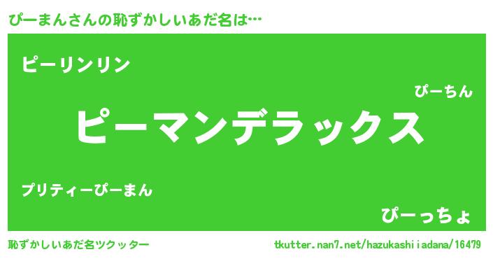 | 意味不明あだ名 | 『自称ぴーまん』『ぴーまんフォーエバー』 |