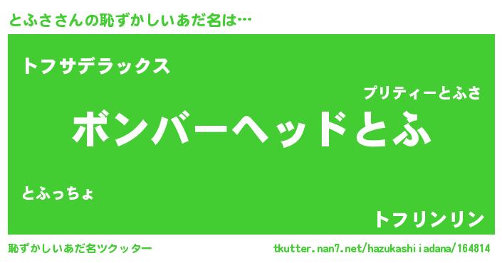 | ヒーロー風カッコイイあだ名 | 『仮面トフダー』『正義の使者とふさ』 |