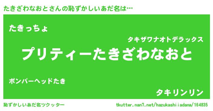 | 胡散臭い通販商品みたいなあだ名 | 『必ず成功する霊験あらたかなお札…その名も「たきざわなおと」』 |
