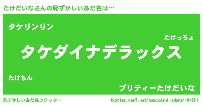 | ヘコむあだ名 | 『たけっ子』『たけふぇ~』『豆乳』 |