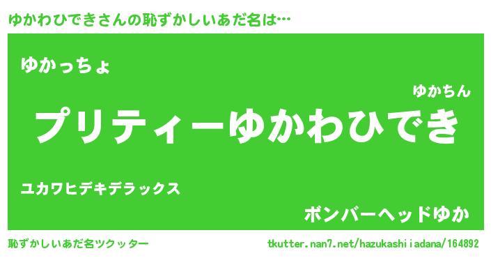 | ヘコむあだ名 | 『ゆかっふぃ~』『豆乳』 |