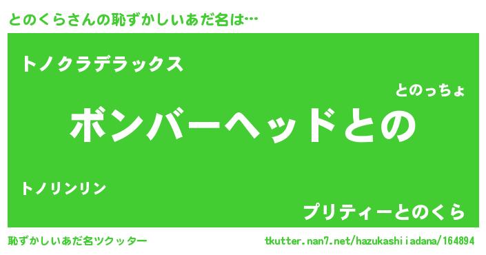 | ヘコむあだ名 | 『とのもー』『豆乳』『との太郎』 |