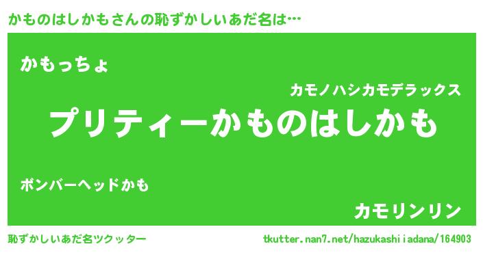 | 胡散臭い通販商品みたいなあだ名 | 『億万長者になれる水晶球…その名も「かものはしかも」』 |