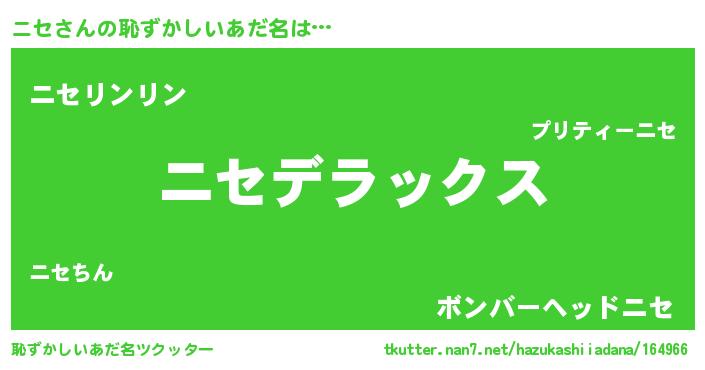 | 女子向けラノベタイトル風あだ名 | 『シンデレラニセ家の靴箱館』『闇のニセ』 |