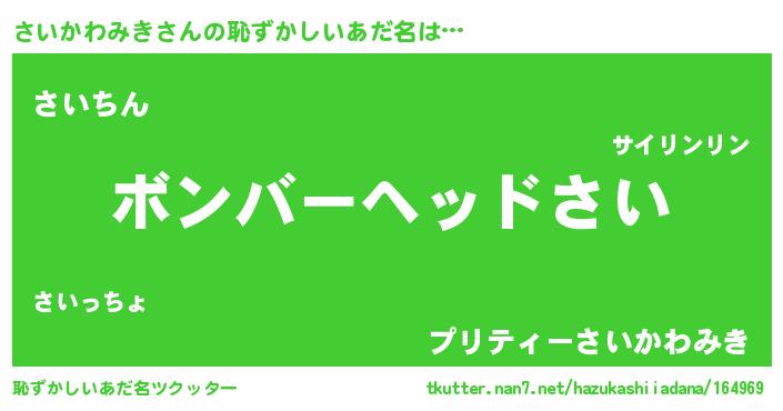 | ヘコむあだ名 | 『さいかわみき(笑)』『さいもー』 |